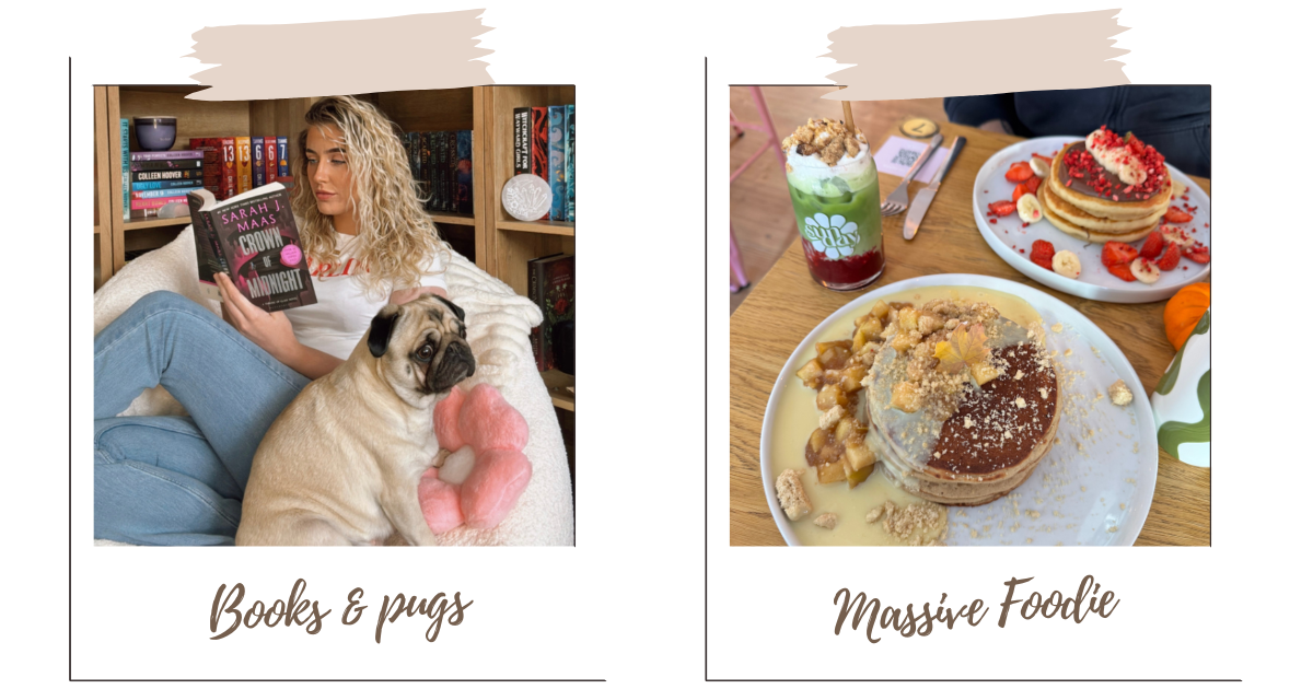 I’m usually cosied up with a book, sometimes personal growth, sometimes fantasy worlds full of dragons (balance, right?). Or catching up with my partner, Jon and our trio of troublemakers (a very needy pug and our two cats) after a busy week.