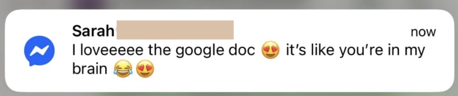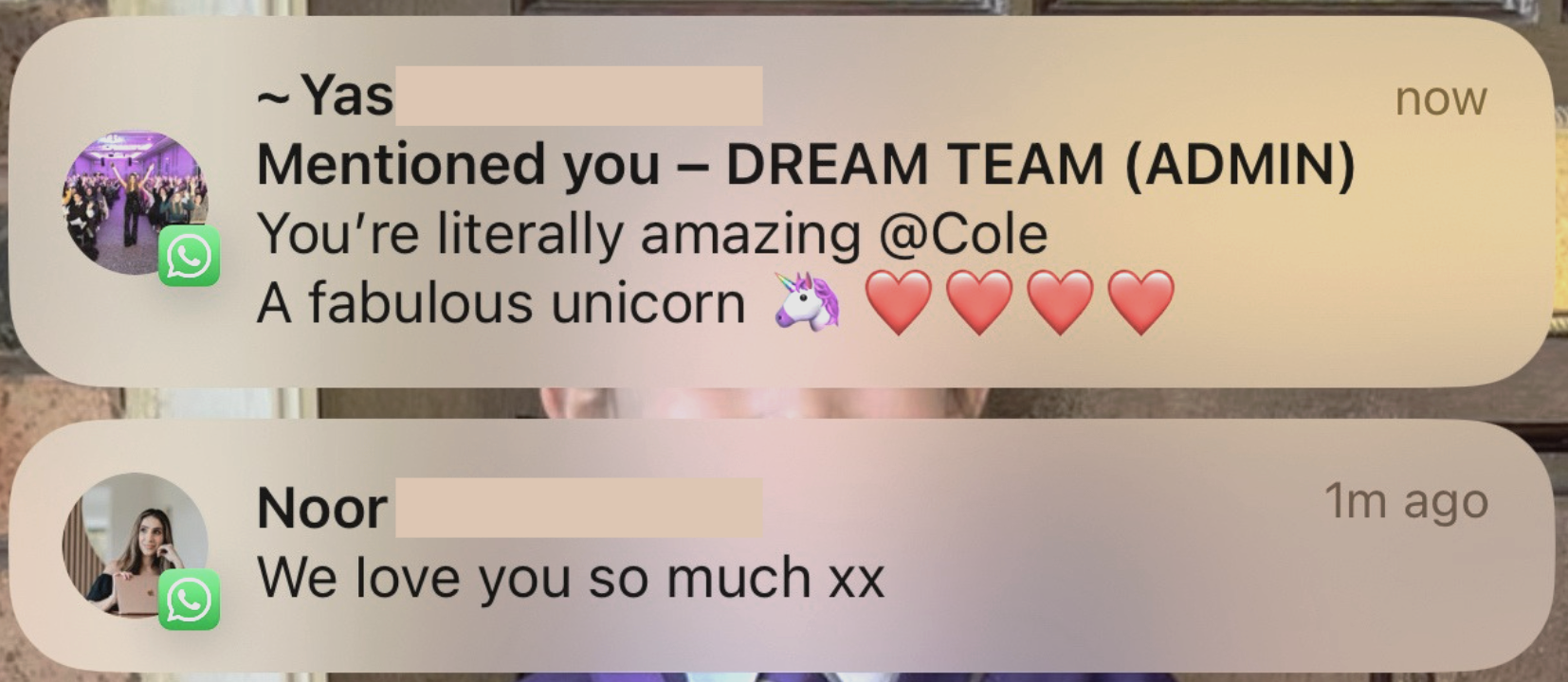 “Thanks for all your amazingness - seriously you’re so good at juggling everything! I’ve been dipping in and out the messages today thinking ‘ahh she’s great’.”