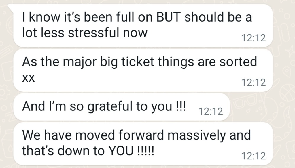 One of my client’s husbands even thanked me for how helpful I was and how i was just what she needed in her business…